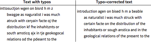 通过随机用标准 QWERTY 键盘中的相邻字符替代,以20%的比率引入错字. 空格从不会错误键入.