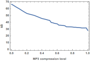 Diferentes níveis de compressão podem ser usados ao exportar para MP3. Níveis de compressão mais altos produzem arquivos menores, mas podem causar distorções na qualidade do som.