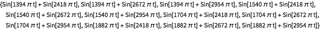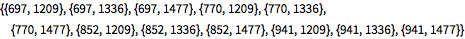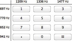 Los pares de frecuencias usadas en una señalización de multifrecuencia de doble tono (DTMF, en sus siglas en inglés).