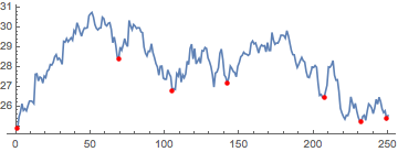 计算并可视化每日股票价格的谷底.