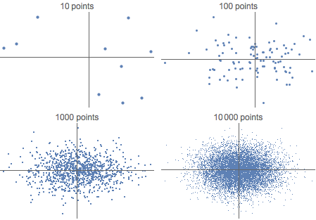 Tamanhos de pontos para gráficos são escolhidos automaticamente de modo que os pontos sejam visíveis e distintos para números e distribuições de valores variáveis.