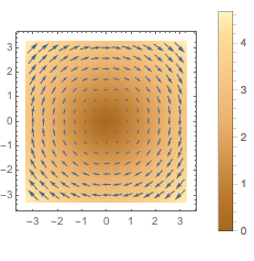 Automatische Legenden für Strömungs- und Vektordichtendiagramme beinhalten eine Farbskala für die Feldstärke.