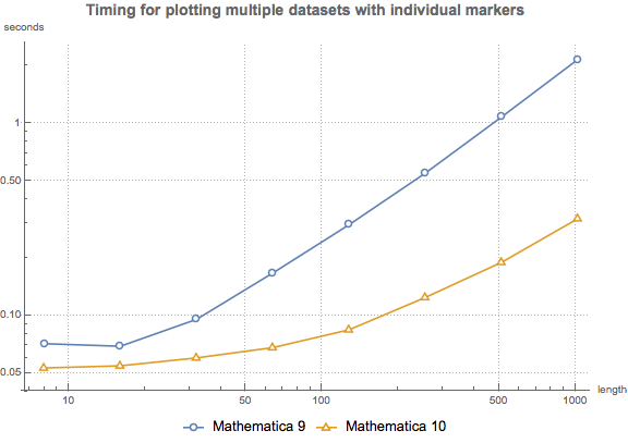 Die graphische Darstellung mehrerer Datensätze mit eigenen Markern kann viel schneller durchgeführt werden.