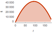 Ballistische Flugbahn einer Rakete, die nach t Sekunden gezündet wurde: