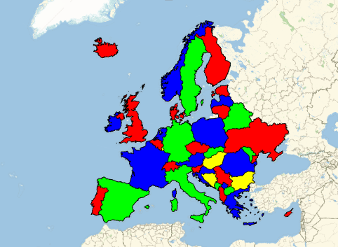 Färben Sie jedes Land entsprechend der berechneten Farbe ein.