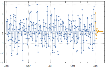 O Mathematica 10 agora suporta processos de séries temporais com função de média diferente de zero, o que facilita a previsão de séries temporais de média diferente de zero.