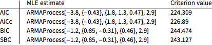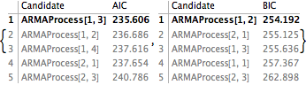 赤池情報量規準(AIC),有限サンプル修正AIC,ベイズ情報量基準(BIC),シュバルツのベイズ情報量基準(SBC)等のさまざまな選択基準に基づいたデータの時系列モデルを選択する.