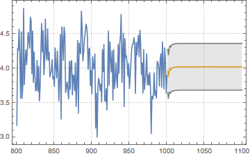 由 TimeSeriesModelFit 找到的时间序列模型可以直接用于 TimeSeriesForecast,从而对检验中的时间序列进行预测.
