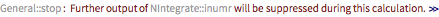Uma mensagem é produzida e o NIntegrate interno mostra que o