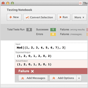 With the new built-in testing framework in Version 10, you can easily write and run tests for your code to ensure that your functions operate as intended. Whether you are writing a single function or an entire application, the symbolic character of the Wolfram Language lets you immediately run tests for even the smallest program snippets and see the results—at any stage of the development cycle.
