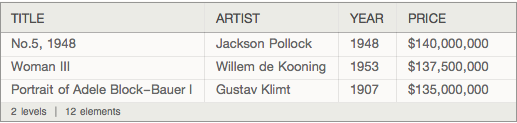 Legen Sie eine hierarchische Datenbank der Auktionspreise von Gemälden an.