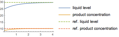 Entwerfen Sie einen Rückführungsregler, der die Sollwerte des Flüsigkeitsstands und der Produktkonzentration eines Rührkessels konstant hält. »