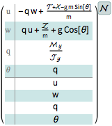 O modelo de seis graus de liberdade em coordenadas do corpo, onde são os termos de inércia.