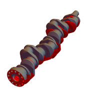Visualice el cigüeñal original y el cigüeñal deformado en rojo utilizando el paquete de elemento finito.