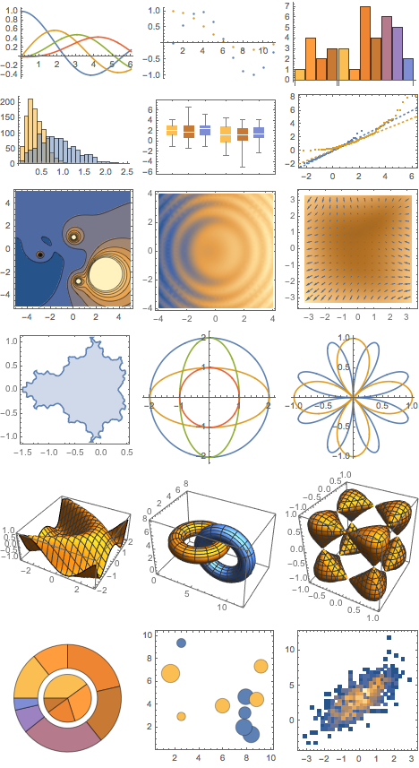 Mathematica 10 ofrece un tema Default con un tipo de letra sans, gráficos de datos coloridos, ejes grises, tamaños de puntos automátizados e iluminación multicolor en 3D.