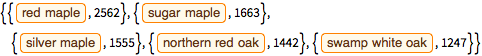 Ache as cinco espécies mais comuns e o número de árvores de cada uma delas.