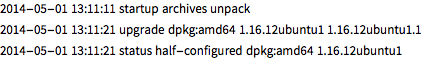 Éstas son las primeras tres entradas de un archivo de registro desde la función dpkg del sistema de Debian.
