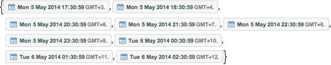 Obtenha todos os horários locais de uma região geográfica extensa.