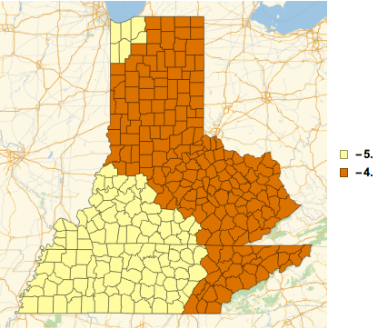 Crie um mapa de fusos horários por condados.