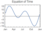 正午における太陽の赤経と恒星時との差を求めて,時刻の方程式をプロットする.