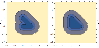 Curvas onde cada ponto tem distância mínima de 0.25, 0.5 e 1.0 para a região.