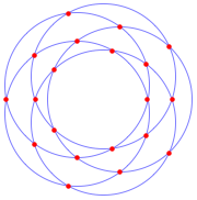 Encontre todas as interseções em pares nos círculos fornecidos.