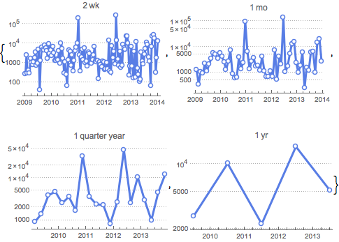 Berechnen Sie mit TimeSeriesAggregate für eine Finanzzeitreihe die Gesamtanzahl der Aktieneinheiten, die pro Quartal gehandelt wurden.