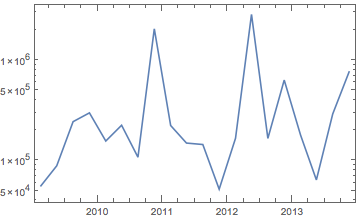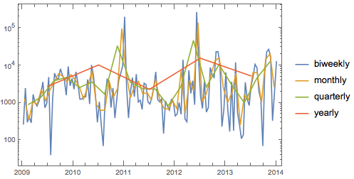 Use TimeSeriesAggregate para computar el número total de acciones negociadas por trimestre para una serie temporal financiera.