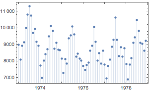 O Mathematica 10 acrescenta caixas dedicadas às séries temporais para permitir uma variação contínua and discreta dessas séries.