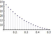 ListPlot[{#, FinancialDerivative[{"PerpetualLookback", "Put"}, {"Expiration" -> 1, "MaxSoFar" -> 50}, {"CurrentPrice" -> 45, "Dividend" -> 0.04, "Volatility" -> #, "InterestRate" -> 0.05}, "CriticalValue"]} & /@ Range[0.1, 0.5, 0.02], Filling -> Axis]