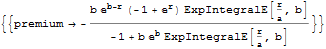 nsp = Expectation[TimeValue[1, EffectiveInterest[r, 0], -t], t \[Distributed] GompertzMakehamDistribution[a, b]] ; Solve[ Expectation[ TimeValue[AnnuityDue[premium, t], EffectiveInterest[r, 0], 0], t \[Distributed] GompertzMakehamDistribution[a, b]] == nsp, premium]