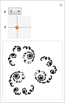 Manipulate[ Graphics[{PointSize[0.0001], Point[cjc[p, d[[1]] + I d[[2]]]]}, AspectRatio -> 1], {{p, 3}, Range[10]}, {{d, {-.5, -.05}}, {-2, -2}, {2, 2}}]