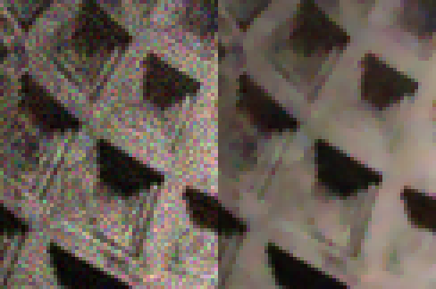 res = TotalVariationFilter[i, 0.35, Method -> "Poisson"]; Image[ImageAssemble[ ImageTake[#, {120, 200}, {170, 230}] & /@ {i, res}], Magnification -> 4]