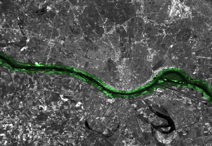 Destaque el río en un mapa aéreo al segmentar la imagen y seleccionar el componente más largo.