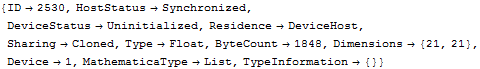 Needs["CUDALink`"] mem = CUDAMemoryLoad[GaussianMatrix[10]]; CUDAMemoryInformation[mem]
