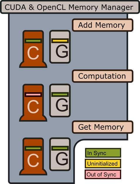 The GPU technology includes the ability to manually handle CUDA and OpenCL memory from within