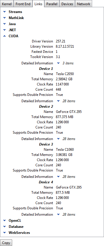Informações sobre dispositivos CUDA e OpenCL estão incluídas na função
