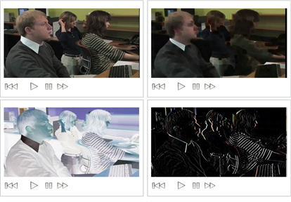 를 사용한 응용 프로그램 예제에서는 다양한 이미지 처리 필터가 적용된 비디오가 실시간으로 재생 됩니다.