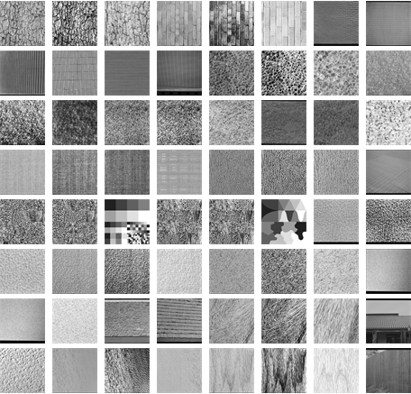 Grid[Partition[ Image[ExampleData[#], ImageSize -> 50] & /@ ExampleData["Texture"], 8]]