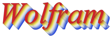text = First[ First[ImportString[ ExportString[ Style["Wolfram", Italic, FontSize -> 24, FontFamily -> "Times"], "PDF"]]]]; Graphics[{EdgeForm[Opacity[0.25]], Table[{ColorData["TemperatureMap"][t], Translate[text, 4 {-t, t}]}, {t, 0, 1, 1/10}]}, ImageSize -> Medium]