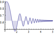 Plot[\!\(\* NamespaceBox["LinguisticAssistant", DynamicModuleBox[{WolframAlphaClient`Private`query$$ = "integrate sin(e^x) from 0 to T", WolframAlphaClient`Private`boxes$$ = RowBox[{"Integrate", "[", RowBox[{ RowBox[{"Sin", "[", RowBox[{"E", "^", "x"}], "]"}], ",", " ", RowBox[{"{", RowBox[{"x", ",", " ", "0", ",", " ", "T"}], "}"}]}], "]"}], WolframAlphaClient`Private`allassumptions$$ = {}, WolframAlphaClient`Private`assumptions$$ = {}, WolframAlphaClient`Private`open$$ = {1}}, DynamicBox[ToBoxes[ AlphaIntegration`LinguisticAssistantBoxes["", 1, Dynamic[WolframAlphaClient`Private`query$$], Dynamic[WolframAlphaClient`Private`boxes$$], Dynamic[WolframAlphaClient`Private`allassumptions$$], Dynamic[WolframAlphaClient`Private`assumptions$$], Dynamic[WolframAlphaClient`Private`open$$]], StandardForm], ImageSizeCache->{211., {11., 17.}}], DynamicModuleValues:>{}], BaseStyle->{Deployed -> True}, DeleteWithContents->True, Editable->False, SelectWithContents->True]\), {T, 1, 5}, Filling -> 0.625]
