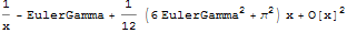 Series[\!\(\* NamespaceBox["LinguisticAssistant", DynamicModuleBox[{WolframAlphaClient`Private`query$$ = "gamma function", WolframAlphaClient`Private`boxes$$ = RowBox[{"Gamma", "[", "x", "]"}], WolframAlphaClient`Private`allassumptions$$ = {{ "type" -> "MultiClash", "word" -> "", "count" -> "3", "Values" -> {{ "name" -> "Function", "word" -> "the input", "desc" -> "a math function", "input" -> "*MC.%7E-_*Function-"}, { "name" -> "ExamplePage", "word" -> "the input", "desc" -> "a general topic", "input" -> "*MC.%7E-_*ExamplePage-"}, { "name" -> "DistributionNoFluff", "word" -> "gamma", "desc" -> "a probability distribution", "input" -> "*MC.%7E-_*DistributionNoFluff-"}}}}, WolframAlphaClient`Private`assumptions$$ = { "*MC.%7E-_*Function-"}, WolframAlphaClient`Private`open$$ = {1}}, DynamicBox[ToBoxes[ AlphaIntegration`LinguisticAssistantBoxes["", 1, Dynamic[WolframAlphaClient`Private`query$$], Dynamic[WolframAlphaClient`Private`boxes$$], Dynamic[WolframAlphaClient`Private`allassumptions$$], Dynamic[WolframAlphaClient`Private`assumptions$$], Dynamic[WolframAlphaClient`Private`open$$]], StandardForm], ImageSizeCache->{142., {12., 17.}}], DynamicModuleValues:>{}], BaseStyle->{Deployed -> True}, DeleteWithContents->True, Editable->False, SelectWithContents->True]\), {x, 0, 1}]