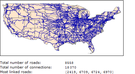titles = Style[#, 11, FontFamily -> "Verdana"] & /@ {"Total number of roads:", "Total number of connections:", "Most linked roads:"};