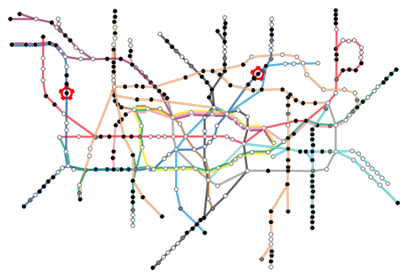h = subwayLineChangeGraph[g, FindShortestPath[g, "Arsenal", "Alperton"]]