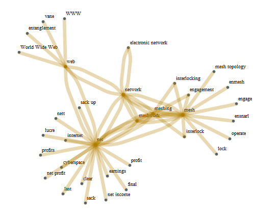 edges = Flatten[ Rest[NestList[ Union[Flatten[ Thread[# -> WordData[#, "Synonyms", "List"]] & /@ Last /@ #]] &, {"" -> "network"}, 2]]];