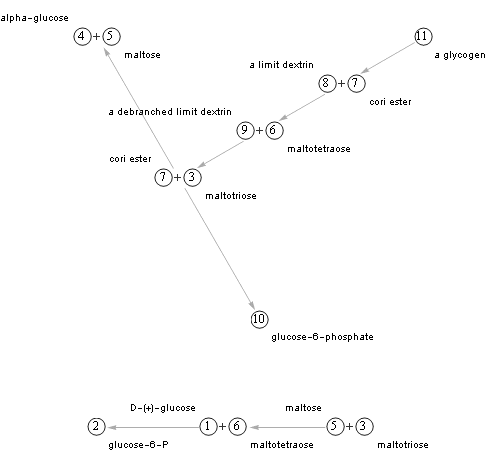 idnames = {1 -> "D-(+)-glucose", 2 -> "glucose-6-P", 3 -> "maltotriose", 4 -> "alpha-glucose", 5 -> "maltose", 6 -> "maltotetraose", 7 -> "cori ester", 8 -> "a limit dextrin", 9 -> "a debranched limit dextrin", 10 -> "glucose-6-phosphate", 11 -> "a glycogen"};