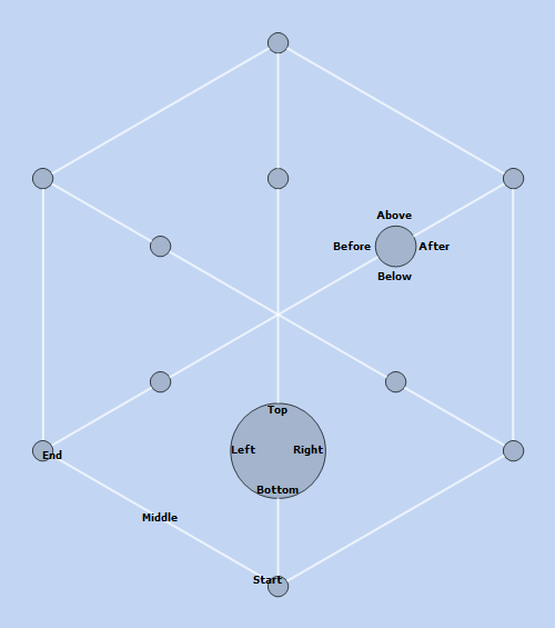 PetersenGraph[6, 3, VertexLabels -> {1 -> place[{Above, After, Below, Before}], 3 -> place[{Left, Top, Right, Bottom}] }, EdgeLabels -> {9 \[UndirectedEdge] 10 -> place[{"Start", "Middle", "End"}]}, EdgeStyle -> Directive[White, Thick], VertexSize -> {0.15, 1 -> 0.3, 3 -> 0.7}, ImagePadding -> 20, ImageSize -> 500, Background -> Hue[.6, .2, .95] ]