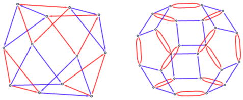 Row[{CayleyGraph[AlternatingGroup[4], BaseStyle -> Thick, ImageSize -> 220], Spacer[50], CayleyGraph[SymmetricGroup[4], BaseStyle -> Thick, ImageSize -> 220]}]