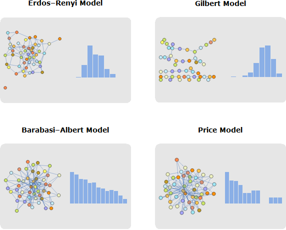 Genere modelos de grafos aleatorios para analizar tamaño de componentes, distribuciones de grados, leyes de potencias, etc.