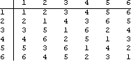 Нахождение таблицы умножения пар элементов группы. Группа является коммутативной, если таблица умножения симметрична.